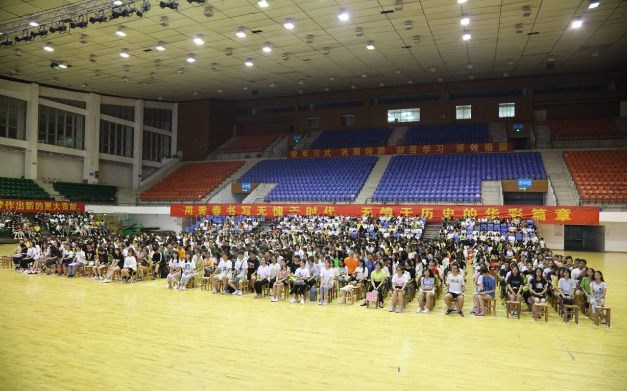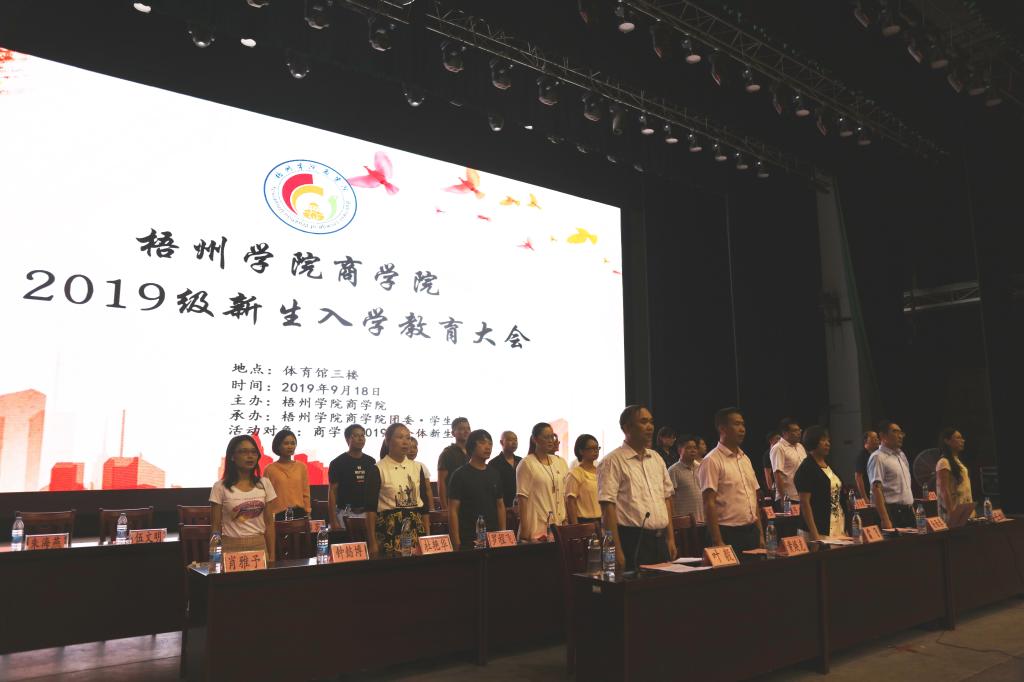 9月18日晚上,商学院在体育馆三楼举行2019级新生入学教育大会。商学院领导班子全体成员、各教研室主任、学院党政办公室、团委、学工办负责人、2019级新生辅导员和班主任、团委·学生会代表以及全体2019级新生共1400多人参加会议。